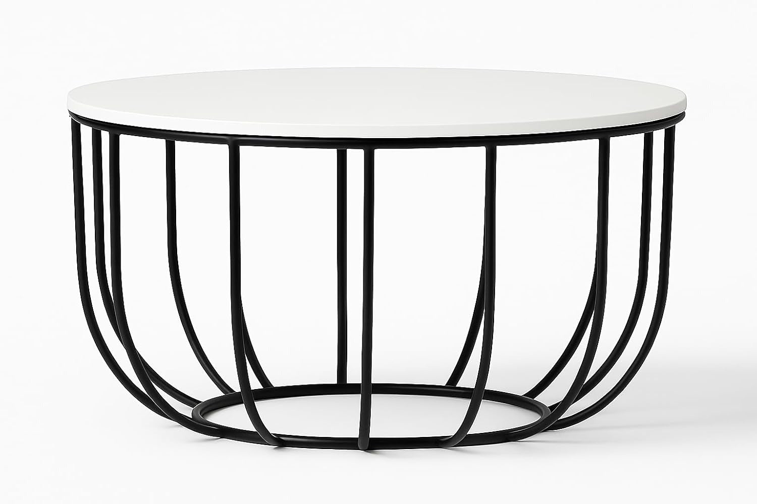 Iron Round Coffee Table with MDF Texture White Top