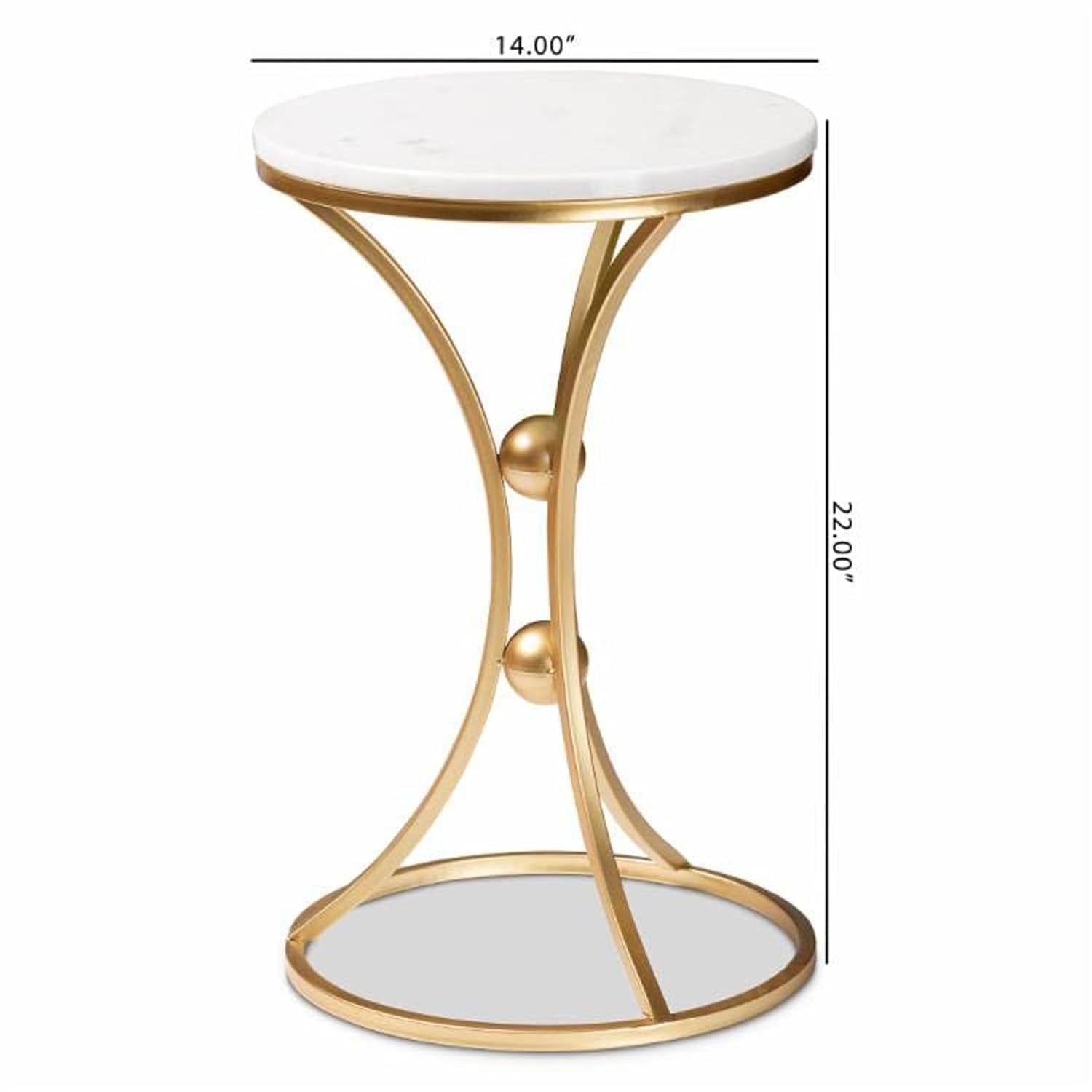 Upgrade your living space with this modern gold metal side table featuring a white marble-style tabletop. Designed to add a touch of luxury and elegance, this accent table blends contemporary aesthetics with functional design. The sturdy gold-finished metal frame offers excellent stability, while the smooth round tabletop provides the perfect surface for décor, lamps, books, or beverages.
