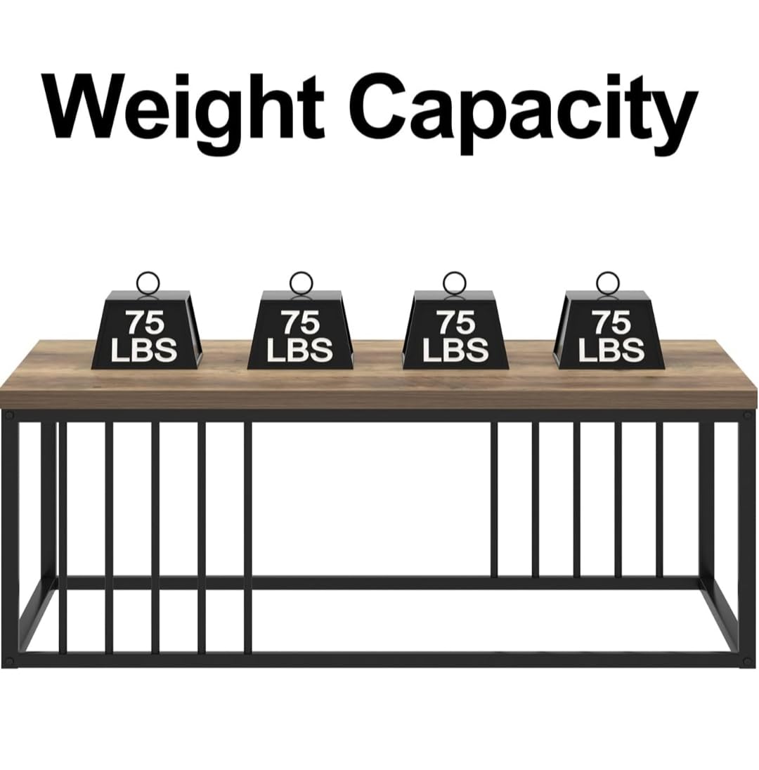 Modern Industrial Wooden Coffee Table with Metal Frame – Minimalist Living Room Center Table